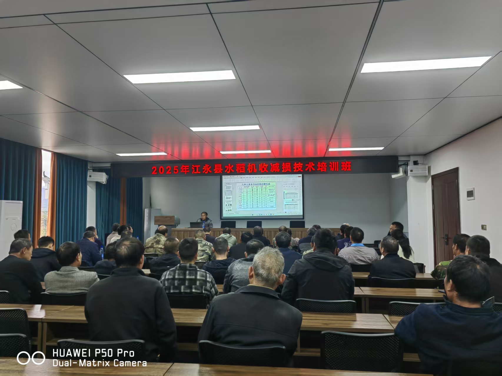 一是加强培训,提高操作技能和职业操守。水稻收割、烘干操作人员的作业认真态度及操作技能都会影响到粮食减损的程度,工作态度认真且操作技能好的机手,在使用农机机收时,粮食减损的成效就会显著,反之则相反。对此,江永县农机事务中心从加强机手操作技能和职业操守的培训入手,让机手在思想上重视,操作上仔细,把单产减损降到最低。2025年江永县举办水稻机收减损培训2场,培训机手38余人次。
