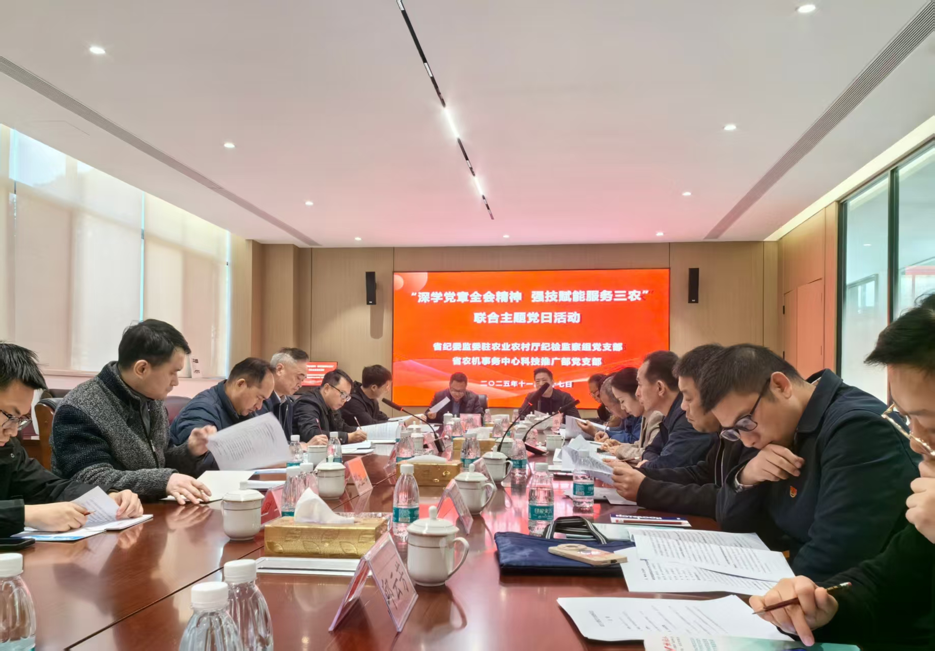 为深入学习贯彻党的二十届四中全会精神,推动党建与业务深度融合,11月27日,省纪委监委驻省农业农村厅纪检监察组党支部与省农机事务中心科技推广部党支部联合开展“深学党章全会精神,强技赋能服务三农”主题党日活动。